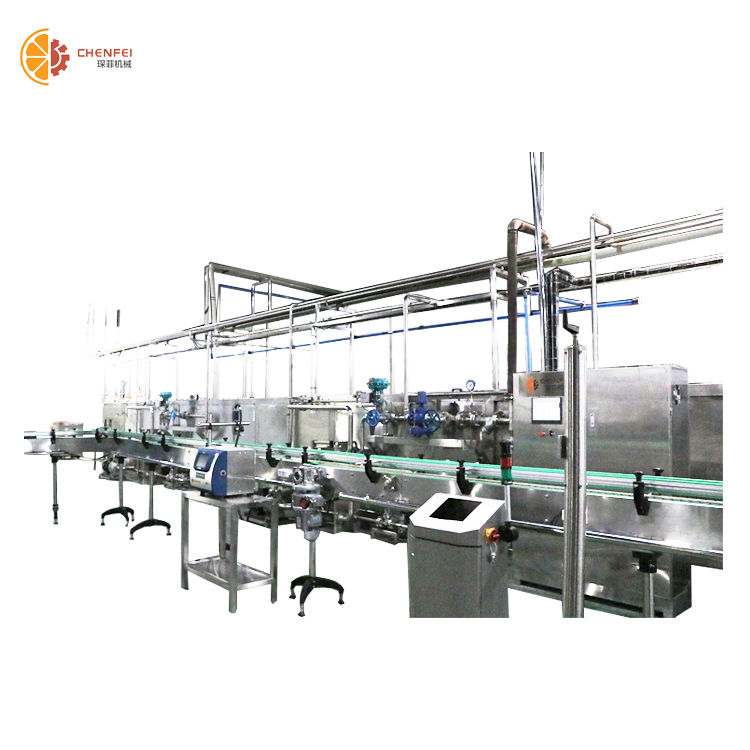在开始清洗循环以前,必须确定全部残留产品已经被清除,设备归位正确,排干喷淋杀菌机到灌装头的供料管内物料,打开蒸汽主截止阀确定提供的蒸汽压力是正确的并且各蒸汽屏蔽是否畅通,如果不能达到,则检查前后蒸汽减压器,确保冷凝液供给线路处于正常状态。当均衡回路正确,受热液体出口温度和冷却部分始终接近温度设定点,则产品可以打入产品罐。在低液位下首先蒸汽薄膜阀关闭使产品再循环,返回杀菌储罐中,当产品处于zui低液位时则供料泵停止,直至杀菌储罐液位重新达到设定液位,自动启动进入生产状态。